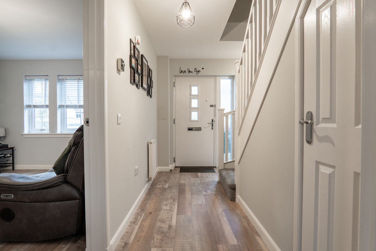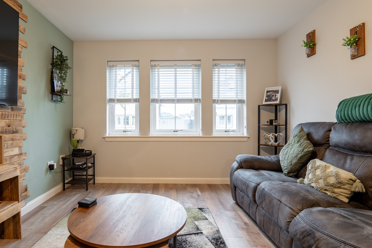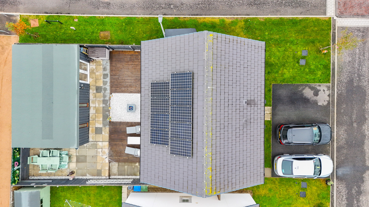 Heating is provided by a mains gas boiler housed in the utility room, supplying radiators throughout the home. The same boiler also delivers the hot water. Solar PV panels on the rear roof slope help improve energy efficiency, reflected in the property’s strong energy efficiency rating of Band B (88) – well above the Scottish average of Band D (61).