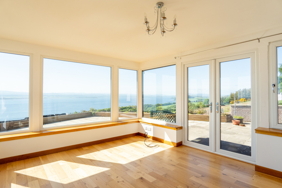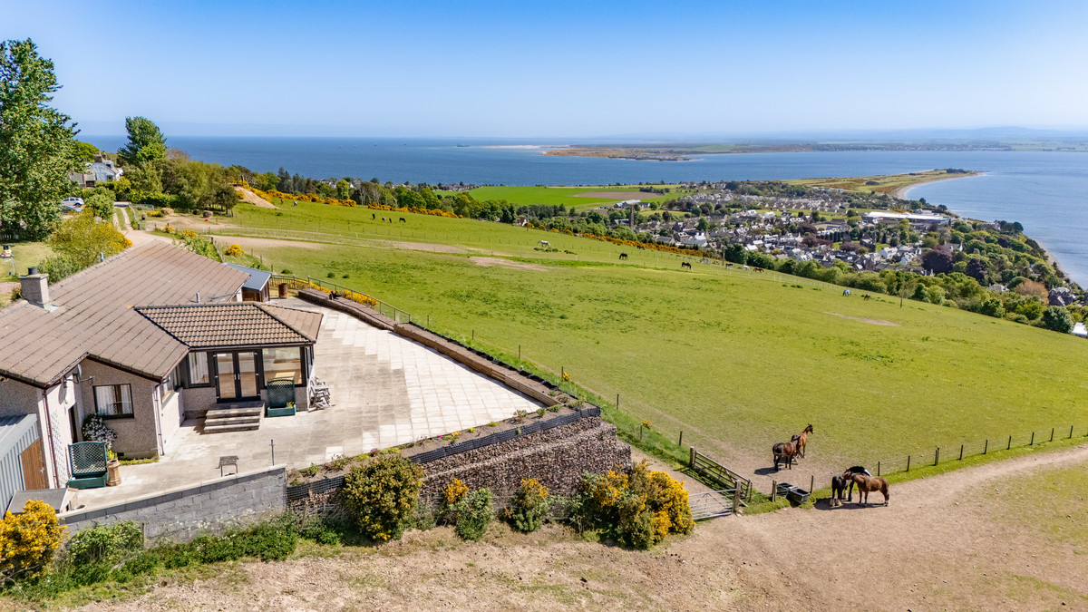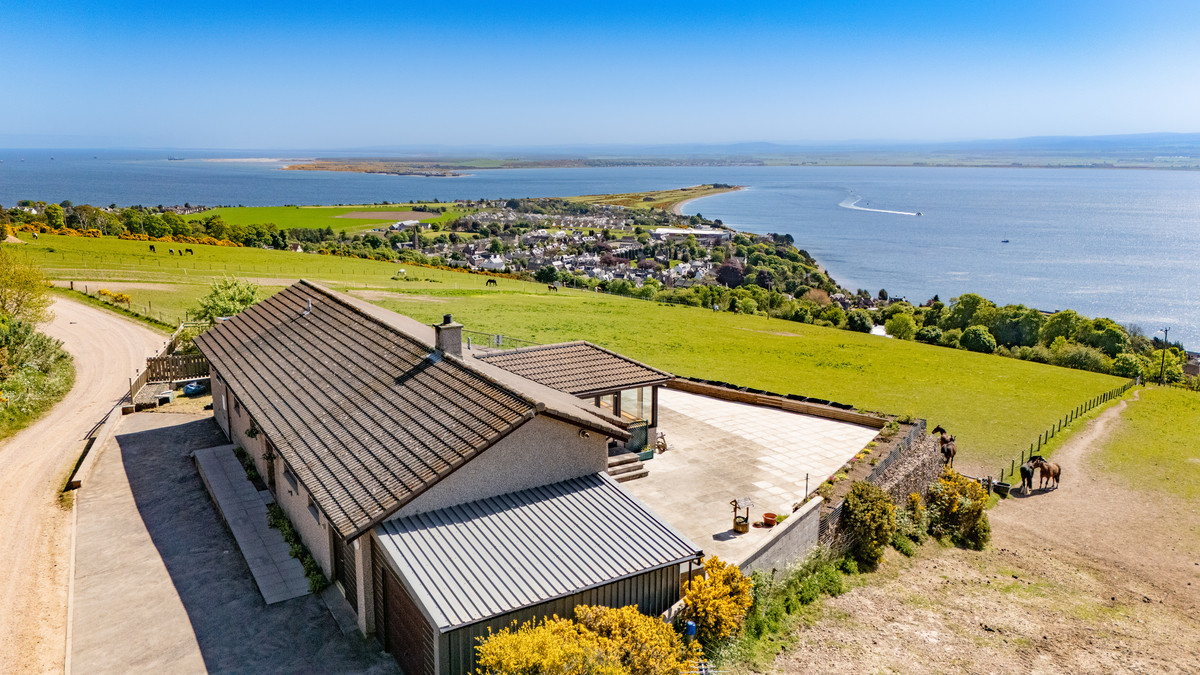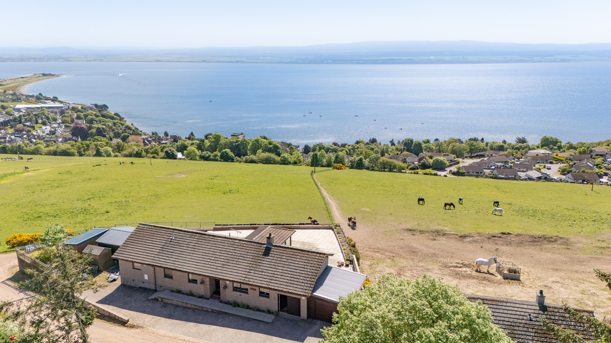 Set in a dramatic elevated position overlooking the Moray Firth, Alamar offers an incredible combination of panoramic sea views, extensive living spaces and a fully equipped detached guest chalet all in a peaceful rural setting just half a mile from Fortrose. This detached bungalow sits on a large plot surrounded by countryside, with open fields and mature grounds wrapping around the property.