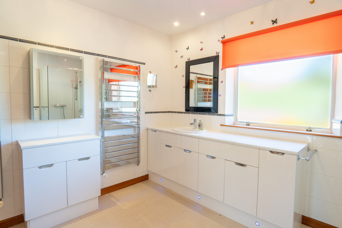 Heating is provided by an oil-fired boiler, supplying radiators throughout the majority of the home. Electric radiators supplement the remaining spaces. Hot water is served by the boiler, connected to a pressurised hot water cylinder located in the bathroom cupboard. All windows and external doors are double glazed, with a mix of UPVC and timber units.