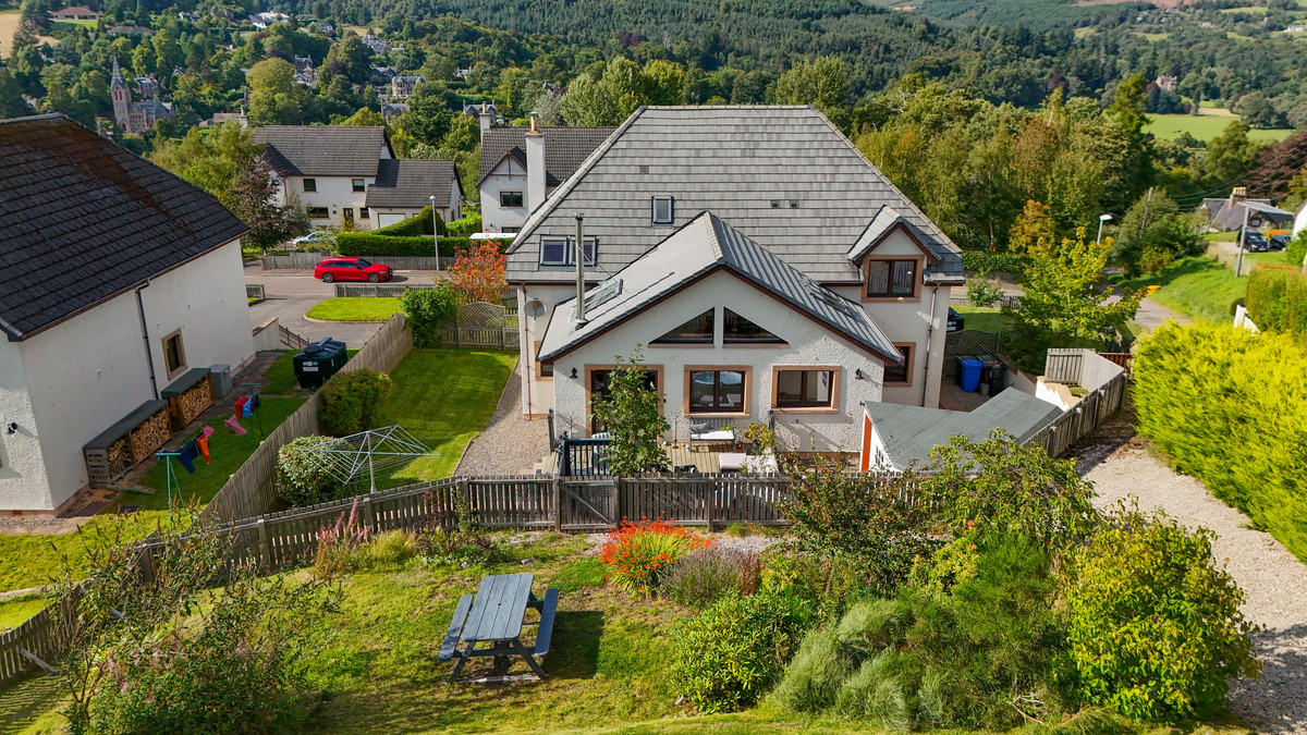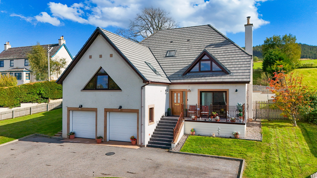 Set within the leafy surrounds of Strathpeffer, 8 Strathview is a striking detached split-level home of scale and quality, designed to offer both luxury and versatility. With multiple reception rooms, balcony, double integral garage and expansive gardens, this is a property that lends itself to family living, entertaining and modern comfort in equal measure.