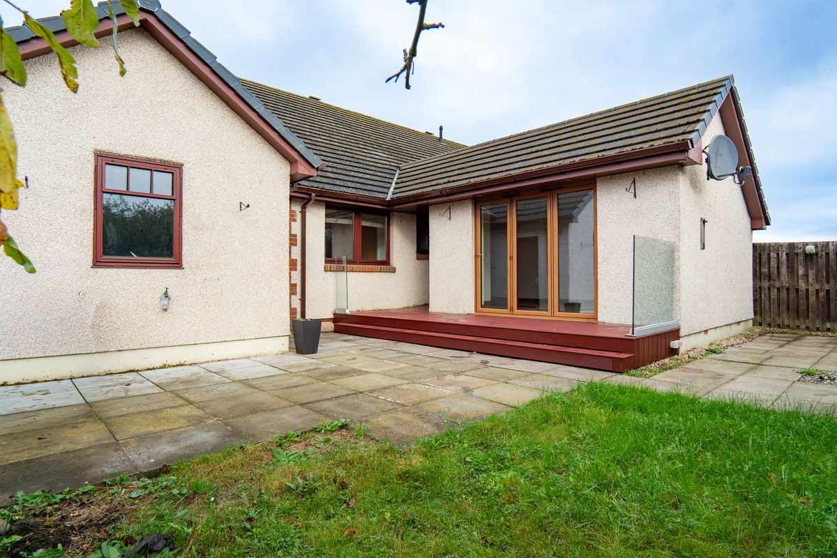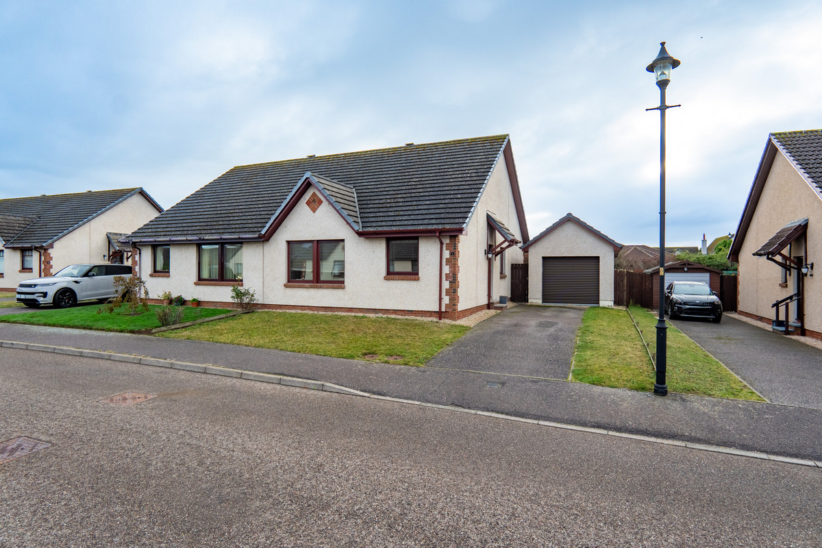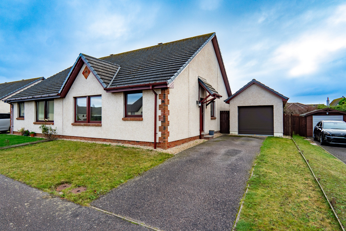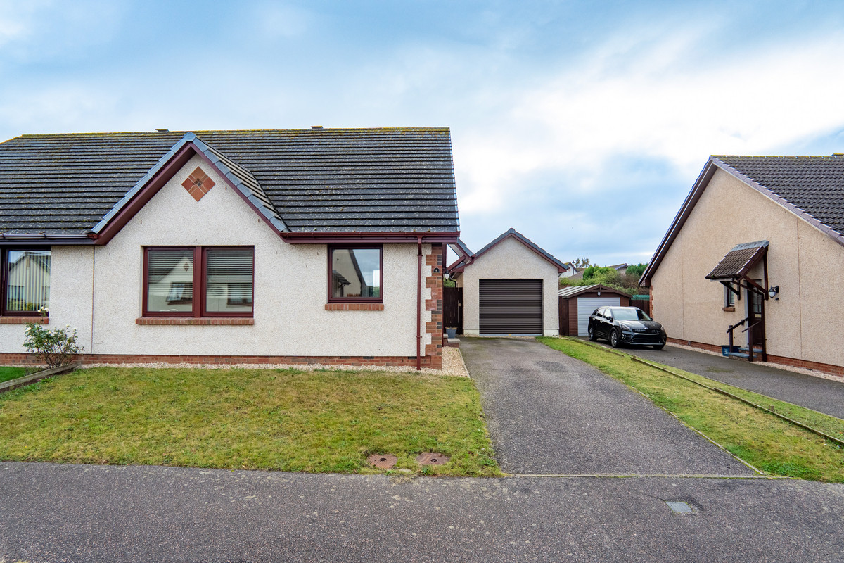 Tucked on the western edge of Nairn, this semi-detached bungalow was built in 2010 and has been thoughtfully extended since. It offers a spacious internal layout of around 99 square metres making it ideal for families. Inside, an open-plan living, dining and kitchen area forms the heart of the home, complemented by three bedrooms, a bathroom and a useful boxroom. Outside you’ll find a neat rear garden with decking, while a detached garage and tarmac driveway provide excellent parking and storage.
