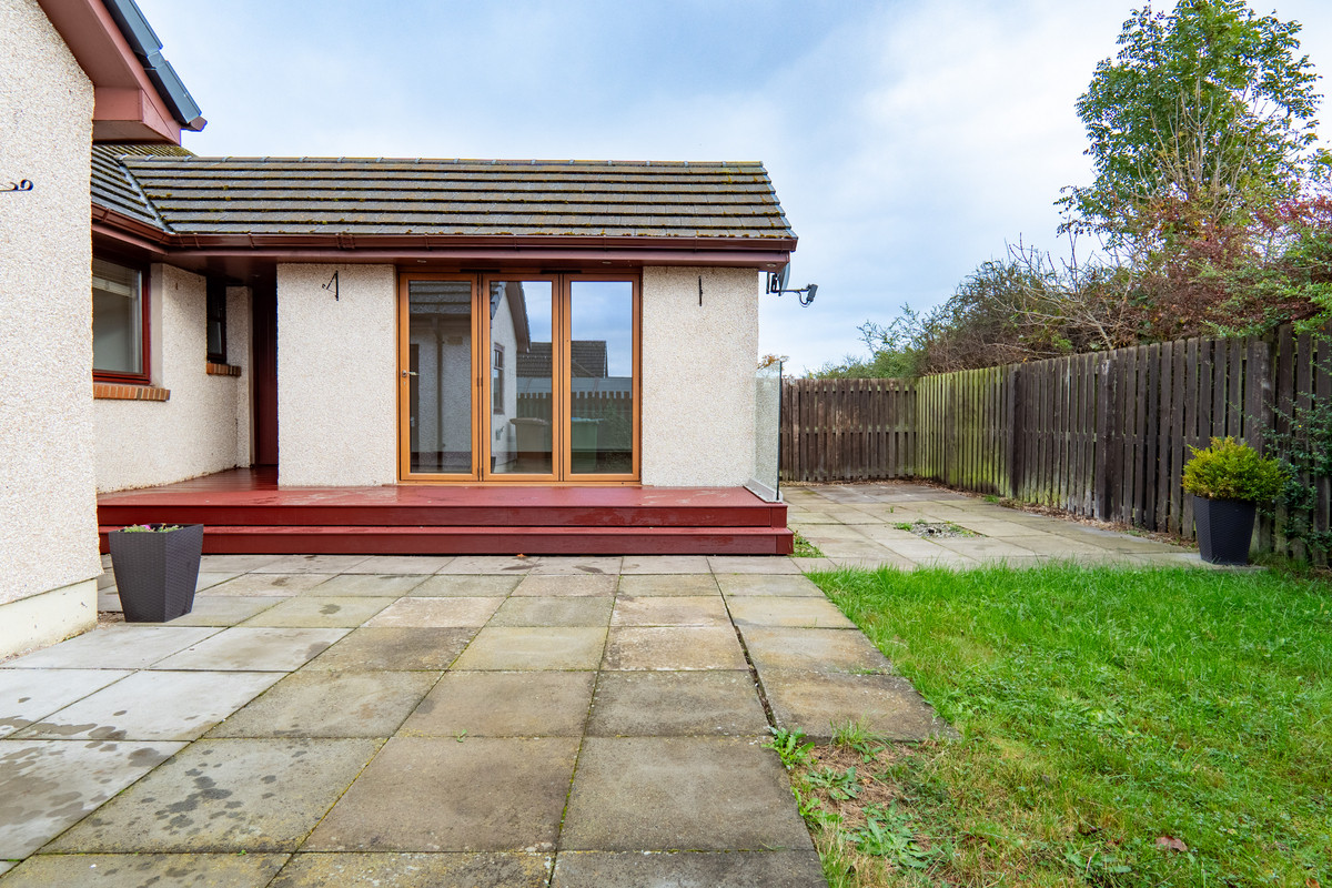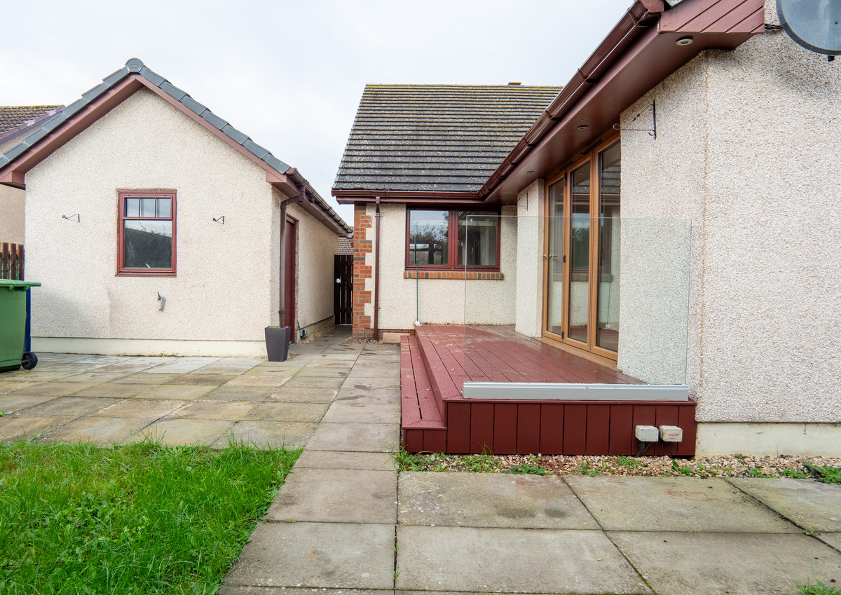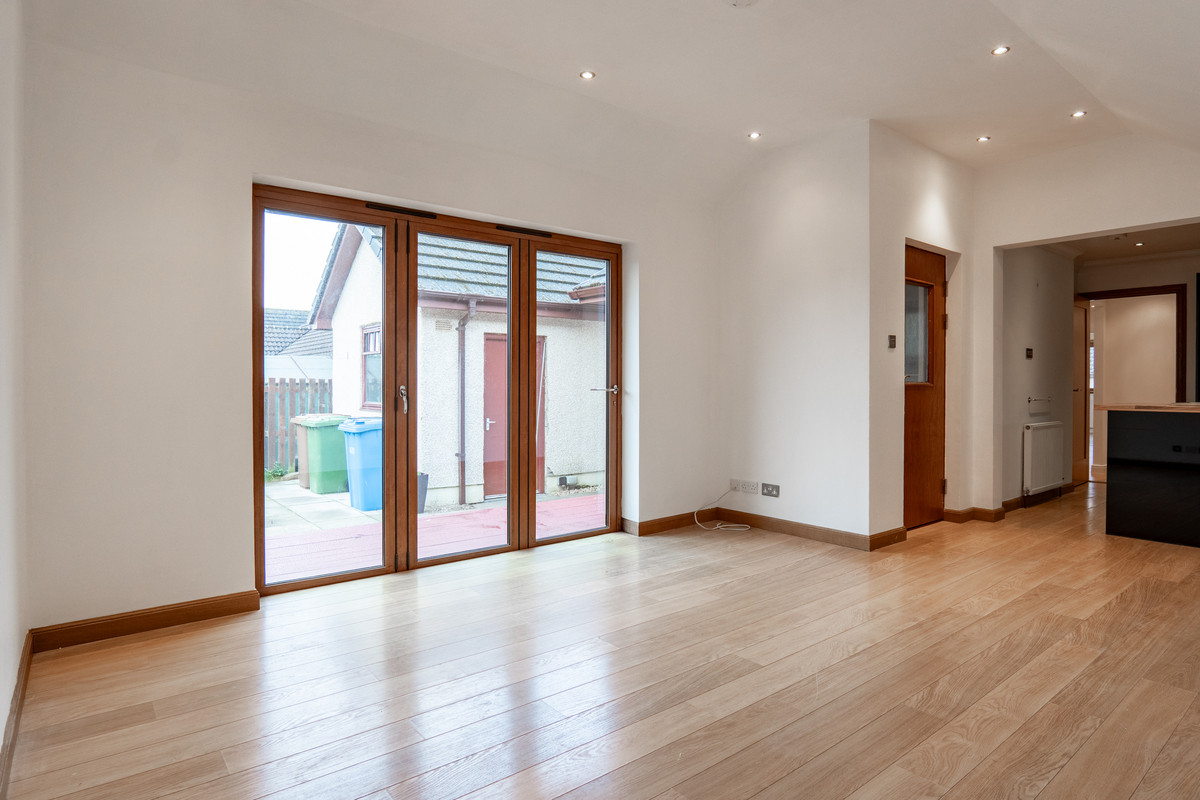 Tucked on the western edge of Nairn, this semi-detached bungalow was built in 2010 and has been thoughtfully extended since. It offers a spacious internal layout of around 99 square metres making it ideal for families. Inside, an open-plan living, dining and kitchen area forms the heart of the home, complemented by three bedrooms, a bathroom and a useful boxroom. Outside you’ll find a neat rear garden with decking, while a detached garage and tarmac driveway provide excellent parking and storage.
