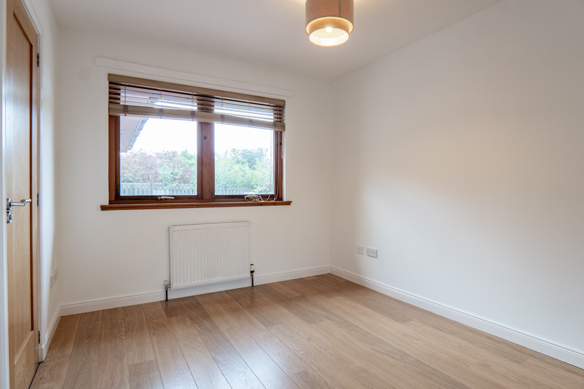 Bedroom three is slightly smaller but neatly designed. It mirrors the other rooms in terms of decor with wooden floor and light painted walls, with a wide window which gives a pleasant outlook.
