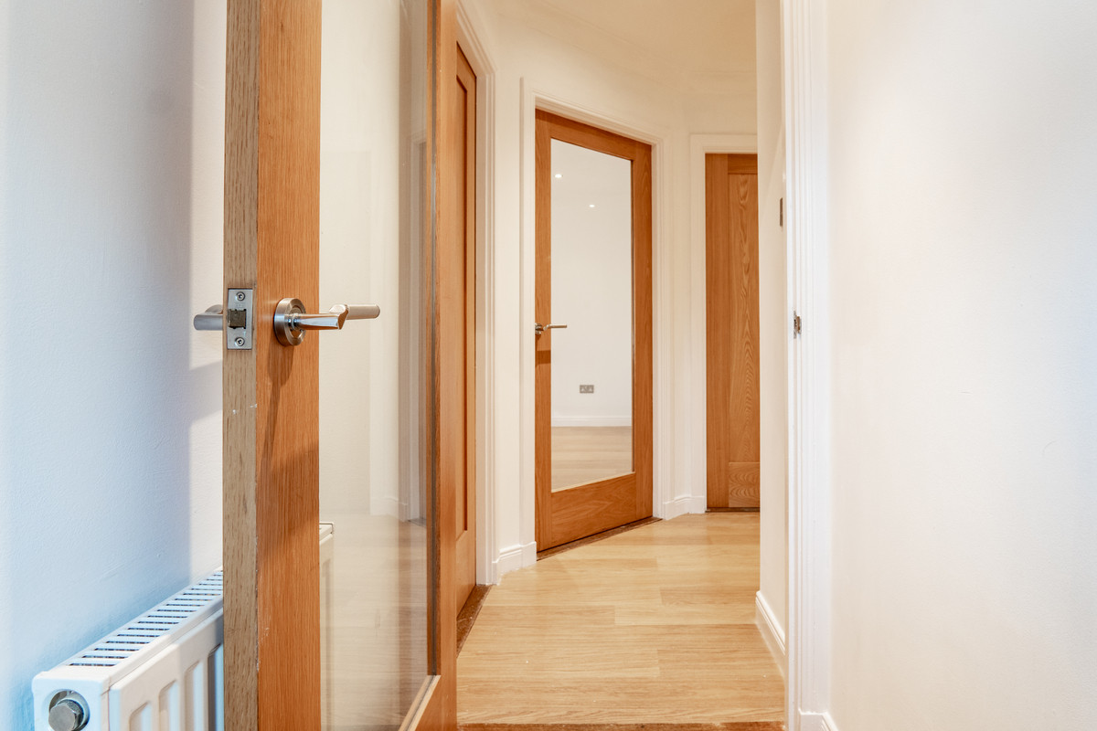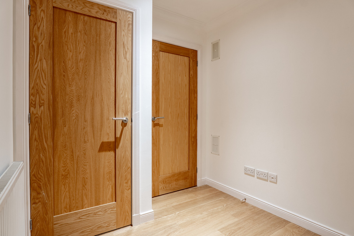 A small boxroom adds extra flexibility to the home. Compact but useful, it could serve as a walk-in storage space, home office or even a dedicated area for hobbies or crafts. With matching wooden flooring and neutral decor, it ties in neatly with the rest of the home while offering valuable additional space.