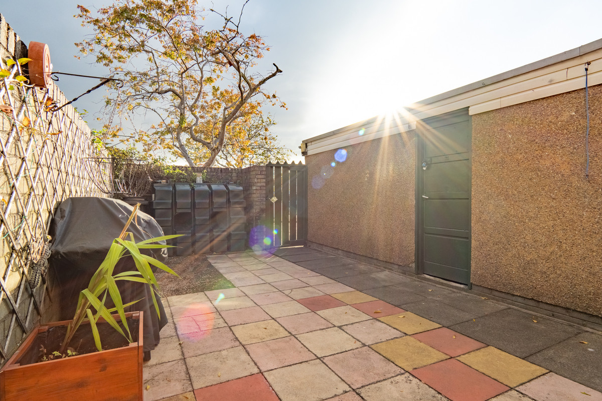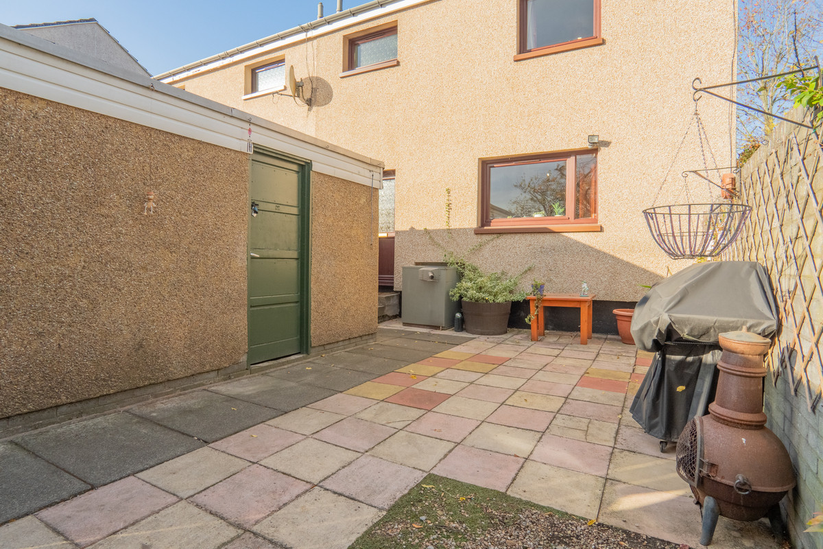 The rear garden is fully enclosed, providing a private and practical outdoor space that’s easy to maintain. Bordered by brick walls, it offers a neat setting for outdoor dining, barbecues or simply relaxing in the fresh air. A semi-detached single garage, built of brick with a flat felt roof, sits to the side and can be accessed via an up-and-over door or a timber pedestrian door.