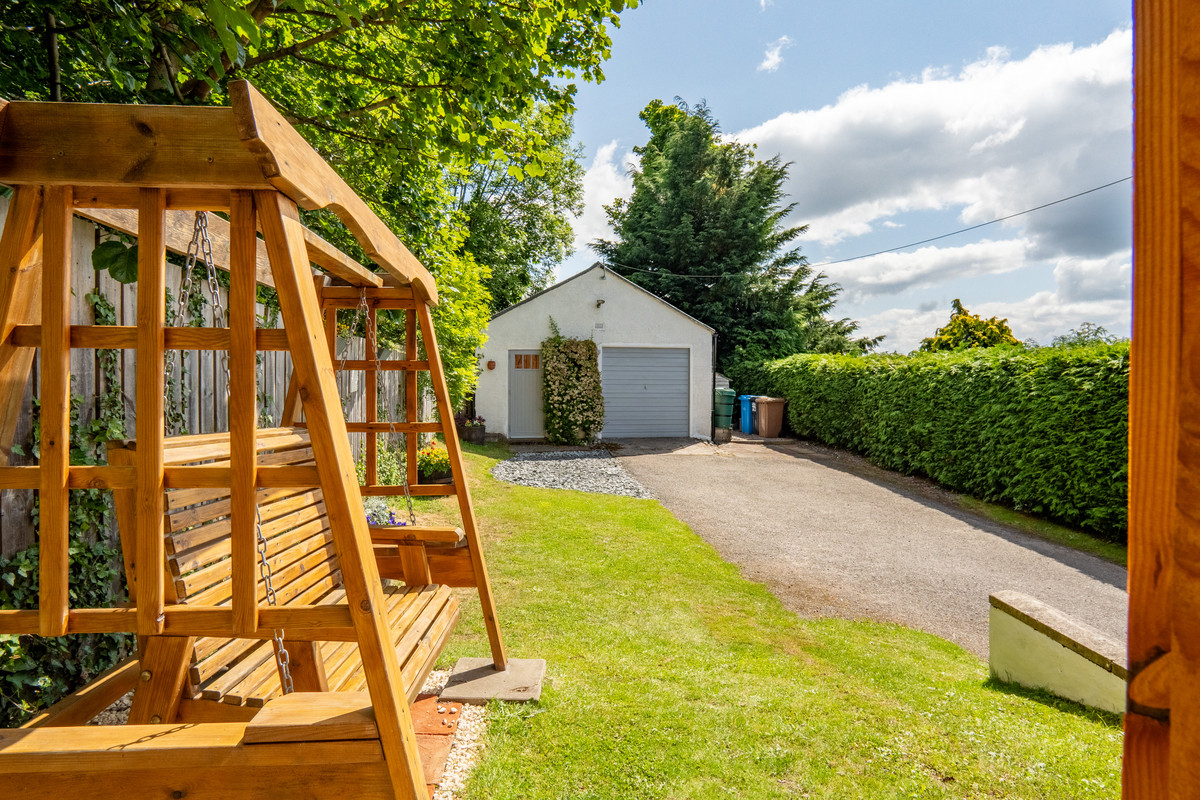 Outside, the garden wraps around the house and is a real showstopper. Mature flower beds, shrubs and planting provide colour and charm throughout the year, while a large timber-decked area surrounding the conservatory offers a fantastic spot for outdoor dining and summer evenings. The tarmac driveway gives easy access to the detached garage, which is generously sized and ideal for parking, storage or workshop use.