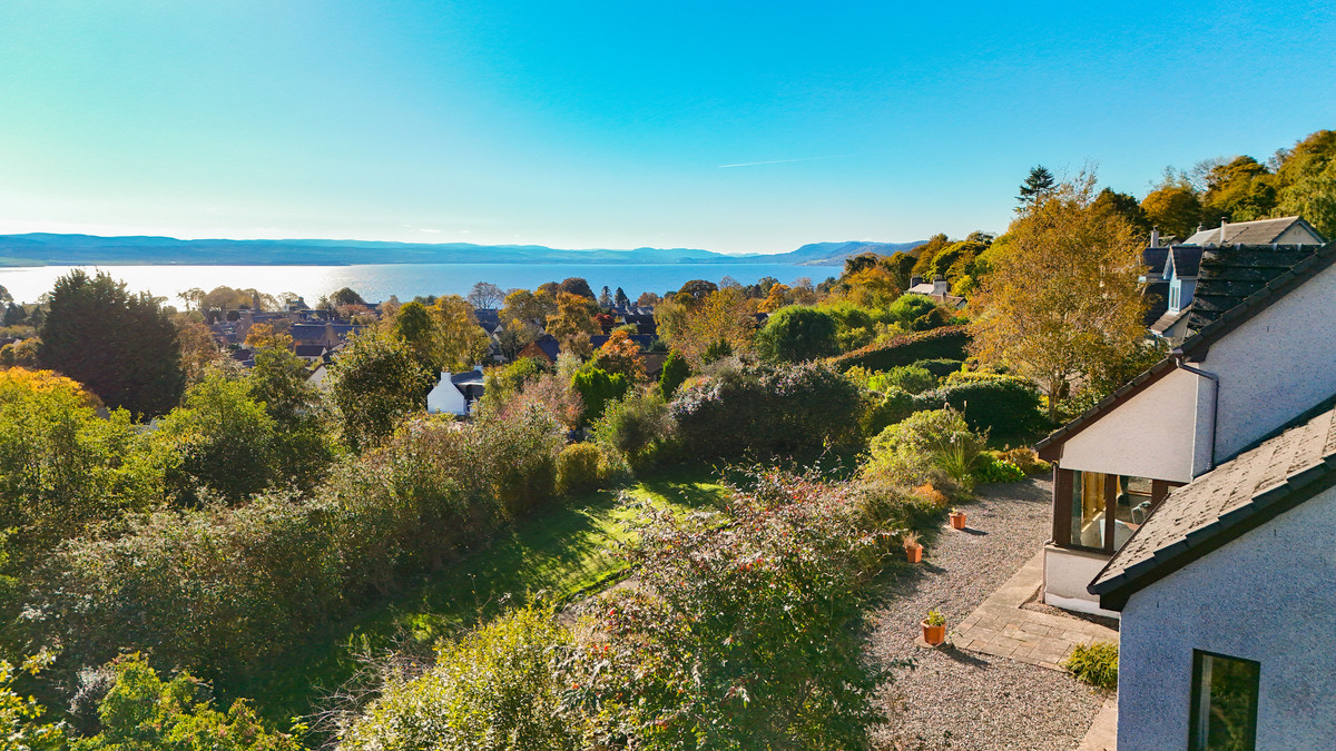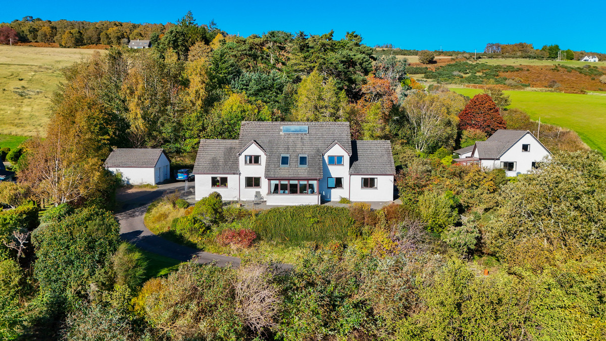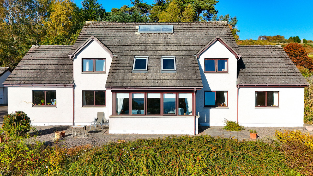 From its elevated position on the outskirts of Fortrose, Ard Beg commands wide ranging views across the Black Isle’s rolling landscape and out to the firth beyond. Built in 2001, this substantial detached home offers around 245 square metres of accommodation across two floors. The five bedroom layout provides flexibility for family living, with multiple reception areas, a modern kitchen and a mix of formal and relaxed spaces throughout. It enjoys a peaceful, semi-rural setting within easy reach of Fortrose’s harbour, golf course and shoreline walks, while Inverness lies a short commute away across the Kessock Bridge.