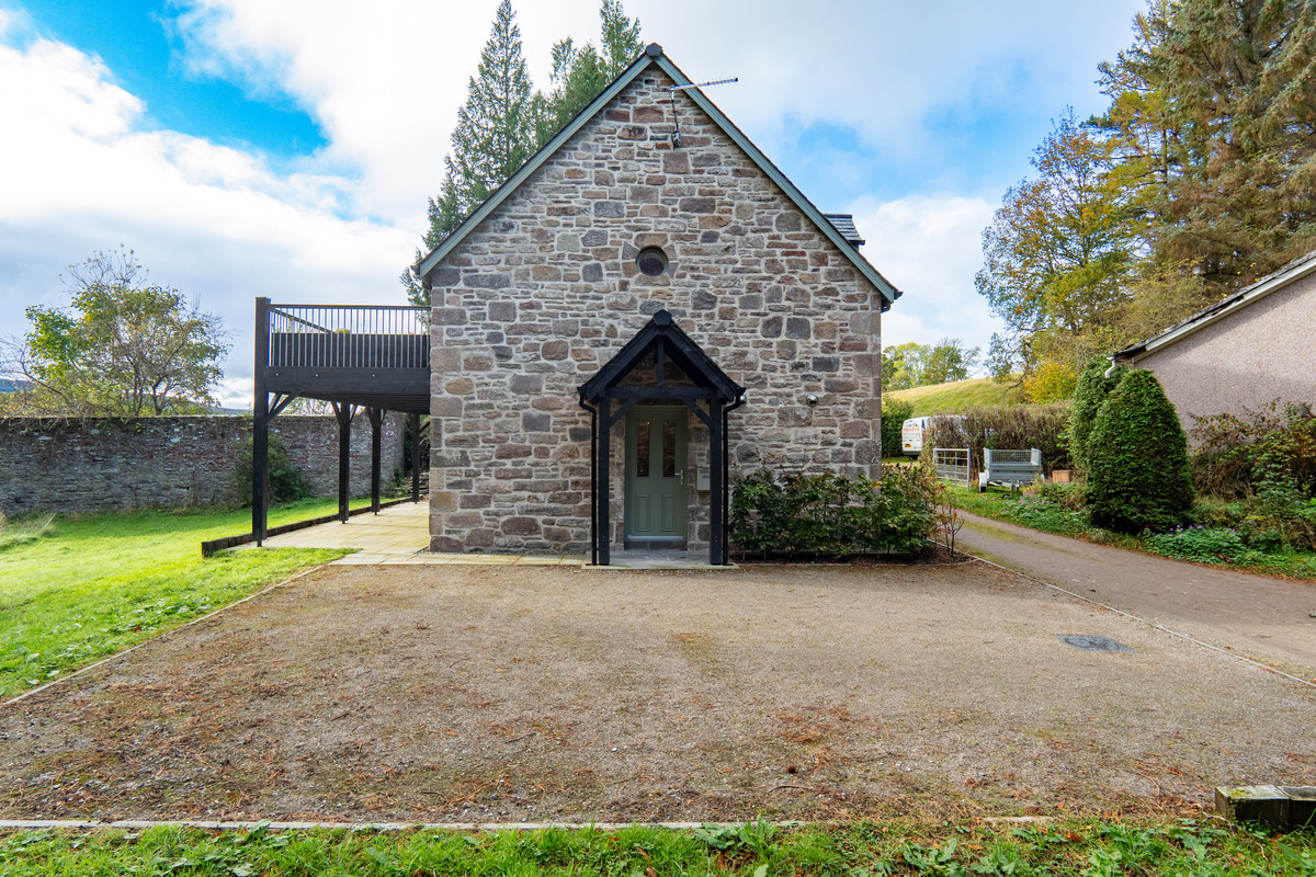 The property features timber framed double glazed windows and matching external doors, with all external timbers finished in painted detail. The stone walls have a neatly pointed finish, complementing the overall design. Heating and hot water are provided by a Vaillant air source heat pump, supplying efficient underfloor heating throughout both floors via a Joule hot water cylinder. Drainage is to a private septic tank.