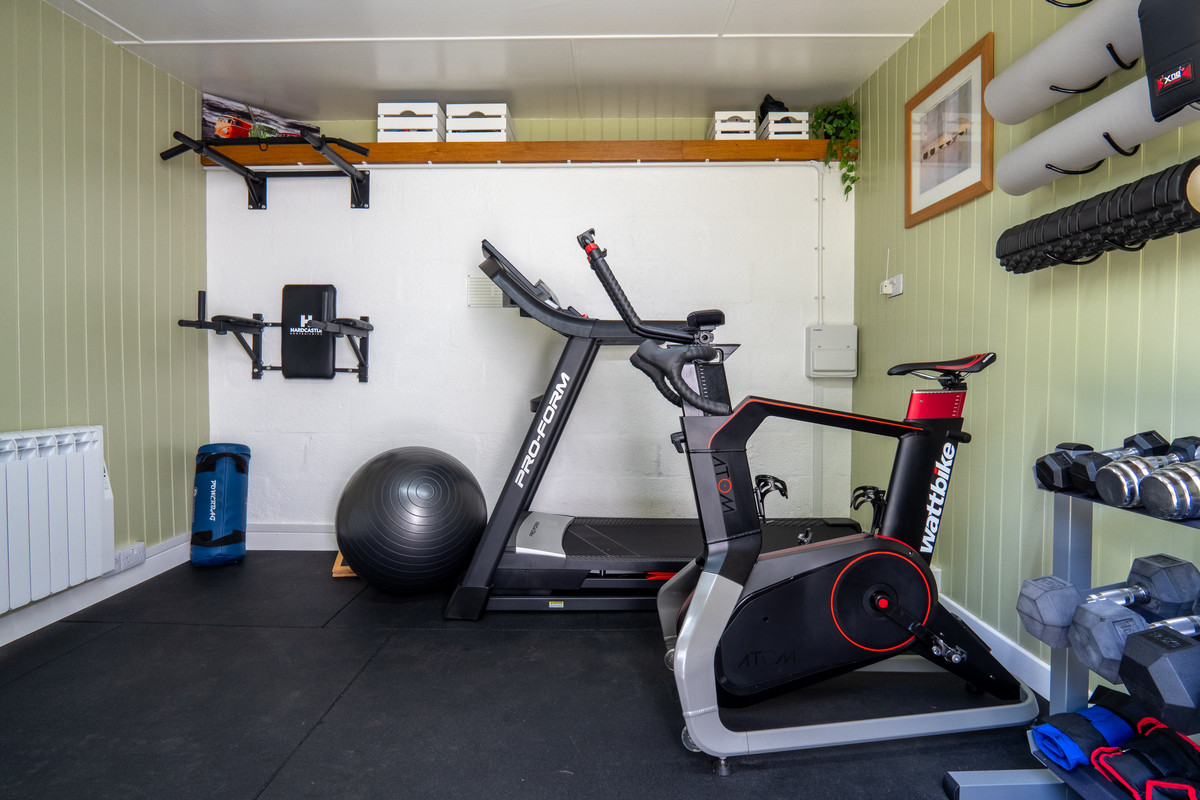 There’s a further room accessed directly from the garden, currently set up as a home gym. With heating, lighting and power already in place, it offers an ideal solution for anyone seeking extra space, whether for fitness, hobbies, a peaceful studio or even a garden office. Its versatility and self-contained access make it a valuable addition to the overall layout.