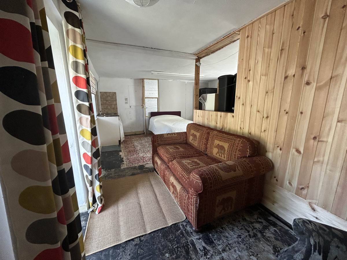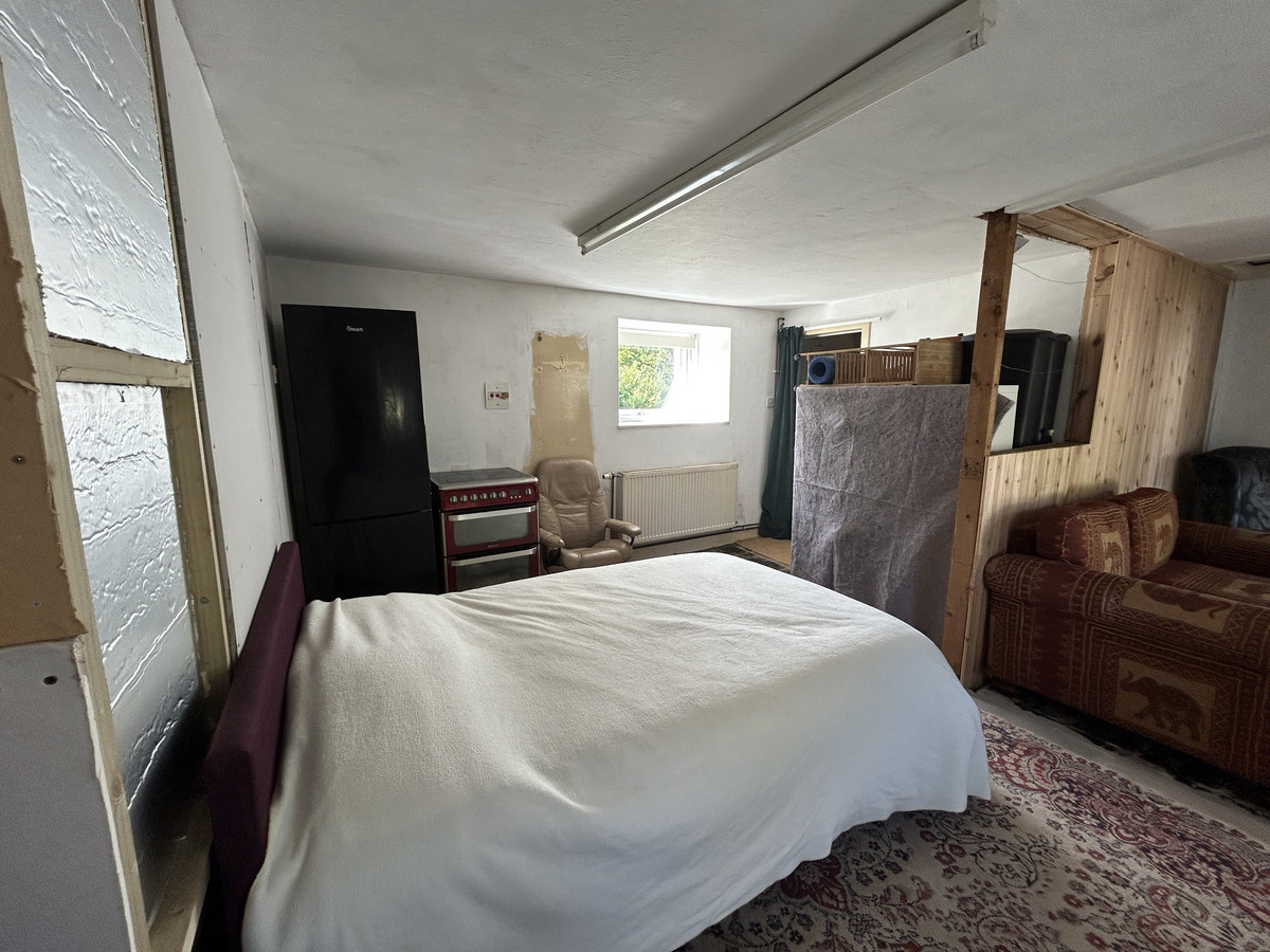 A second reception room offers further flexibility, it could be used as a large ground-floor bedroom, a second lounge or even a studio or hobby space. Some internal works remain unfinished, with sections of exposed plaster giving a glimpse into the property’s potential. With generous proportions and ample light, this is a room full of promise.